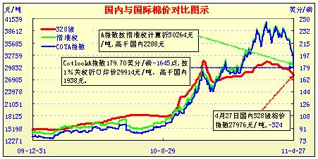 國(guó)內(nèi)外棉價(jià)對(duì)比圖表(3.31-4.27)