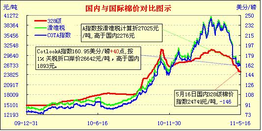 國內(nèi)外棉價對比圖表(4.15-5.16)