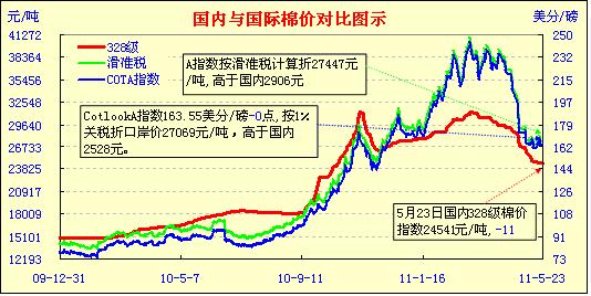 國內(nèi)外棉價(jià)對比圖表(4.15-5.23)