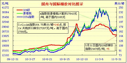 國內(nèi)外棉價對比圖表(4.29-5.31)