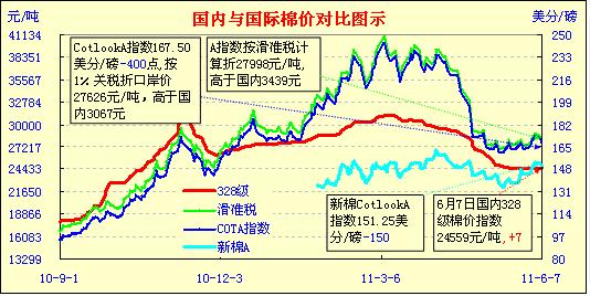 國內(nèi)外棉價(jià)對(duì)比圖表(5.20-6.7)