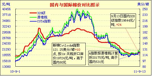 國內(nèi)外棉價(jià)對(duì)比圖表(8.22-9.13)