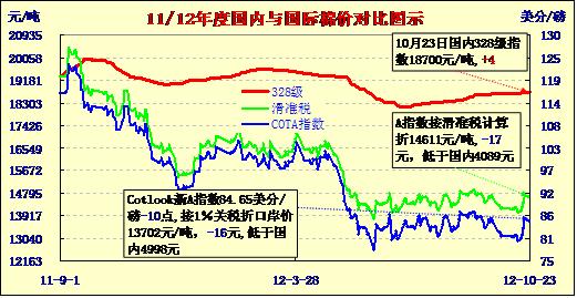 國內(nèi)外棉價(jià)對比圖表(10-23)