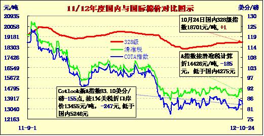國內(nèi)外棉價(jià)對(duì)比圖表(10-24)