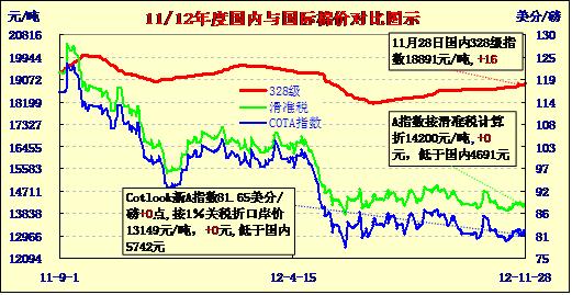 國內(nèi)外棉價(jià)對(duì)比圖表(11-28)