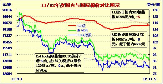 國內(nèi)外棉價對比圖表(11-5)