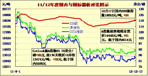 國(guó)內(nèi)外棉價(jià)對(duì)比圖表(12-17)