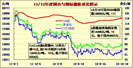 國內(nèi)外棉價(jià)對比圖表(12-19)