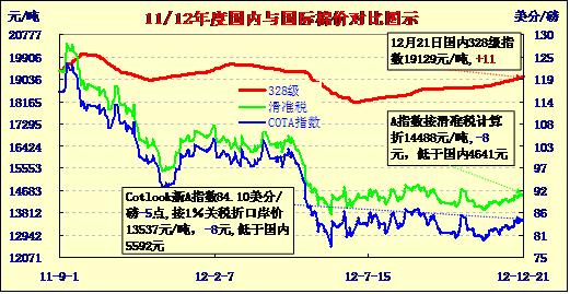 國內(nèi)外棉價(jià)對比圖表(12-21)