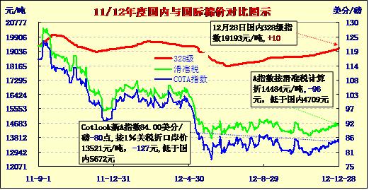 國內(nèi)外棉價(jià)對比圖表(12-28)