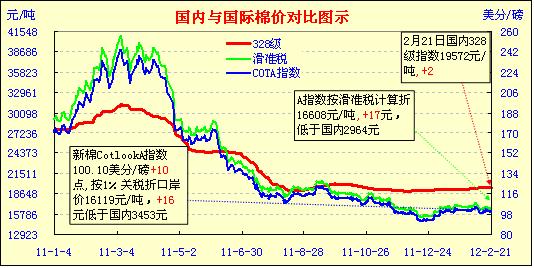 國(guó)內(nèi)外棉價(jià)對(duì)比圖表(2-21)
