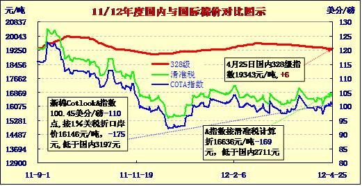 國(guó)內(nèi)外棉價(jià)對(duì)比圖表(4-25)