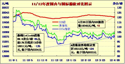 國(guó)內(nèi)外棉價(jià)對(duì)比圖表(4-26)