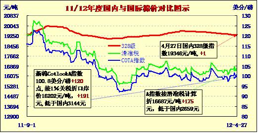 國(guó)內(nèi)外棉價(jià)對(duì)比圖表(4-27)
