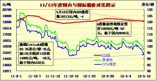 國(guó)內(nèi)外棉價(jià)對(duì)比圖表(5-10)