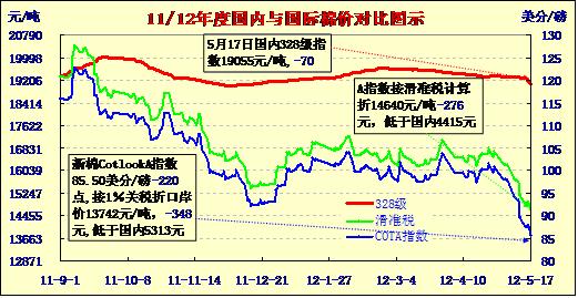 國內(nèi)外棉價(jià)對比圖表(5-17)
