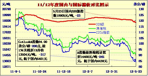 國內(nèi)外棉價對比圖表——內(nèi)外價差5000(5-23)