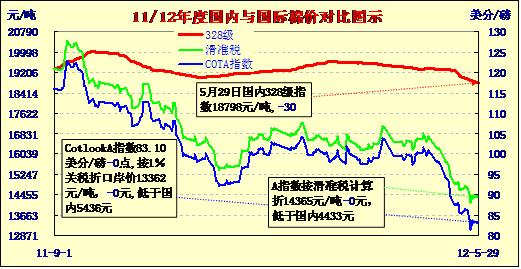 國(guó)內(nèi)外棉價(jià)對(duì)比圖表(5-29)