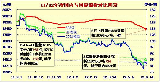 國內(nèi)外棉價對比圖表(6-14)