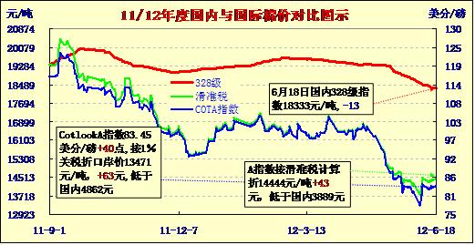 國(guó)內(nèi)外棉價(jià)對(duì)比圖表(6-18)