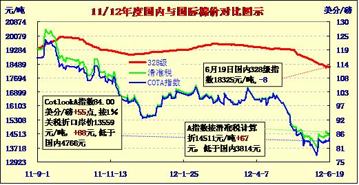 國內(nèi)外棉價對比圖表(6-19)