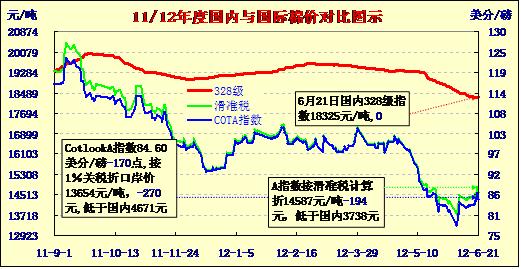 國(guó)內(nèi)外棉價(jià)對(duì)比圖表(6-21)
