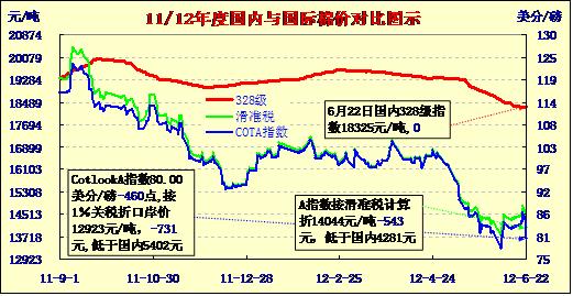 國內(nèi)外棉價對比圖表(6-22)