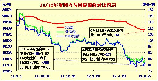 國內(nèi)外棉價對比圖表(6-27)