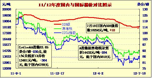國(guó)內(nèi)外棉價(jià)對(duì)比圖表(7-18)