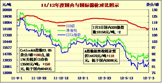國內(nèi)外棉價對比圖表(7-3)