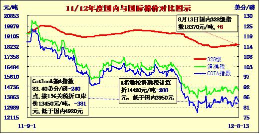 國內(nèi)外棉價(jià)對(duì)比圖表(8-13)