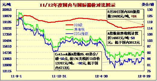 國內(nèi)外棉價對比圖表(8-29)