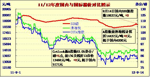 國內(nèi)外棉價(jià)對(duì)比圖表(9-14)