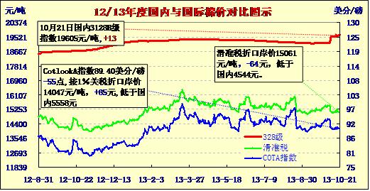 國(guó)內(nèi)外棉價(jià)對(duì)比圖表(10-21)