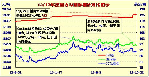 國內(nèi)外棉價(jià)對(duì)比圖表(10-22)