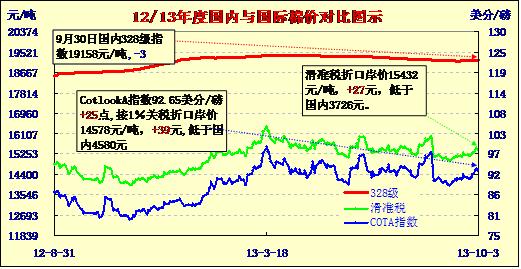國內(nèi)外棉價(jià)對(duì)比圖表(10-03)