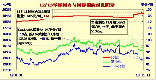 國內(nèi)外棉價(jià)對(duì)比圖表(11-11)