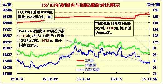 國內(nèi)外棉價對比圖表(11-26)