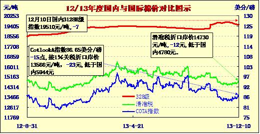 國(guó)內(nèi)外棉價(jià)對(duì)比圖表(12-10)
