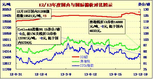 國內(nèi)外棉價(jià)對比圖表(12-19)