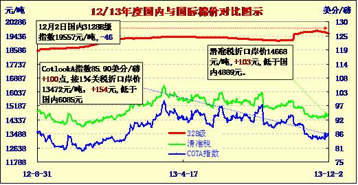 錦橋紡織網—資訊頻道> 棉花信息> cotlook>正文 國內外棉價對比圖表(12-02)