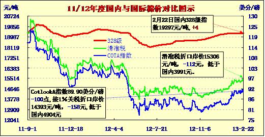 國內(nèi)外棉價對比圖表(13-2-22)