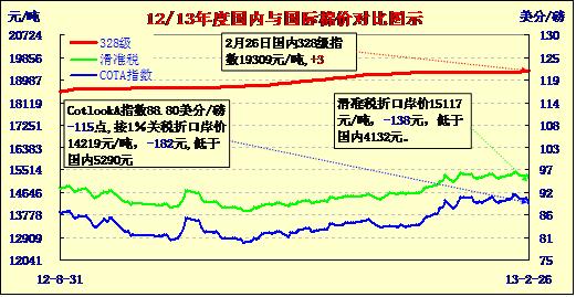 國(guó)內(nèi)外棉價(jià)對(duì)比圖表(13-2-26)