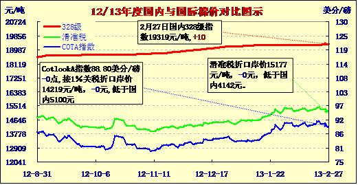 國內(nèi)外棉價對比圖表(13-2-27)