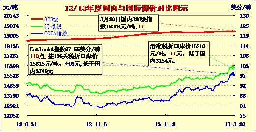 國內(nèi)外棉價(jià)對比圖表(13-3-20)