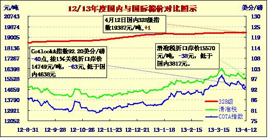 國內(nèi)外棉價對比圖表(13-4-12)