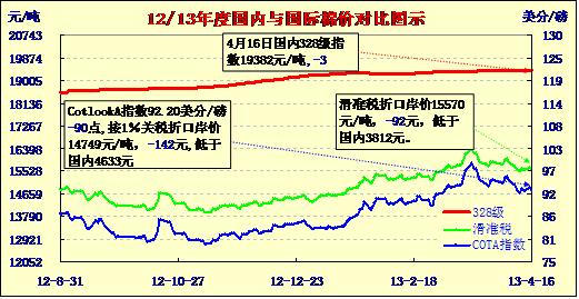 國內(nèi)外棉價對比圖表(13-4-16)