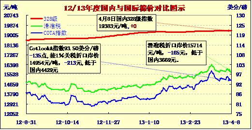 國(guó)內(nèi)外棉價(jià)對(duì)比圖表(13-4-8)
