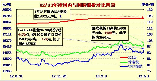 國(guó)內(nèi)外棉價(jià)對(duì)比圖表(13-5-1)