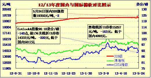 國內(nèi)外棉價(jià)對比圖表(13-5-24)